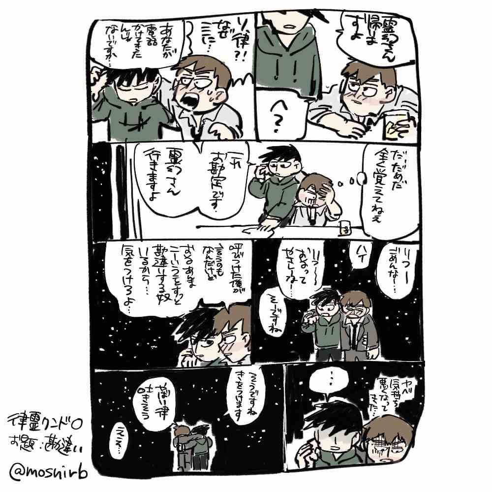 律霊ワンドロで描いたやつの漫画版(途中まで漫画で書こうとしてて書きかけのネームがもったいなかったので…)漫画難しい