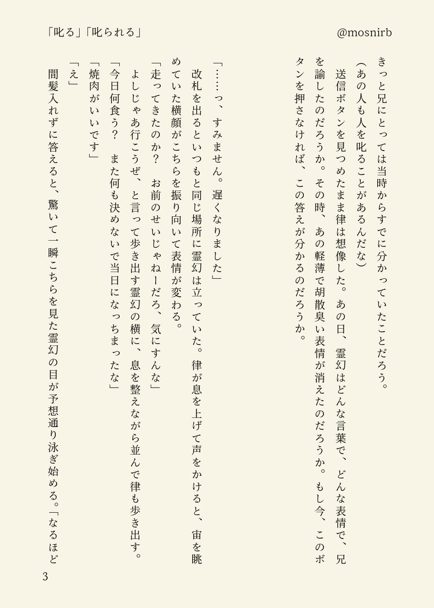 律霊はレ氏に愛を告白する影山律より、レと付き合っていることを兄さんに告白する影山律を1000通り見たいみたいなとこある(最悪)