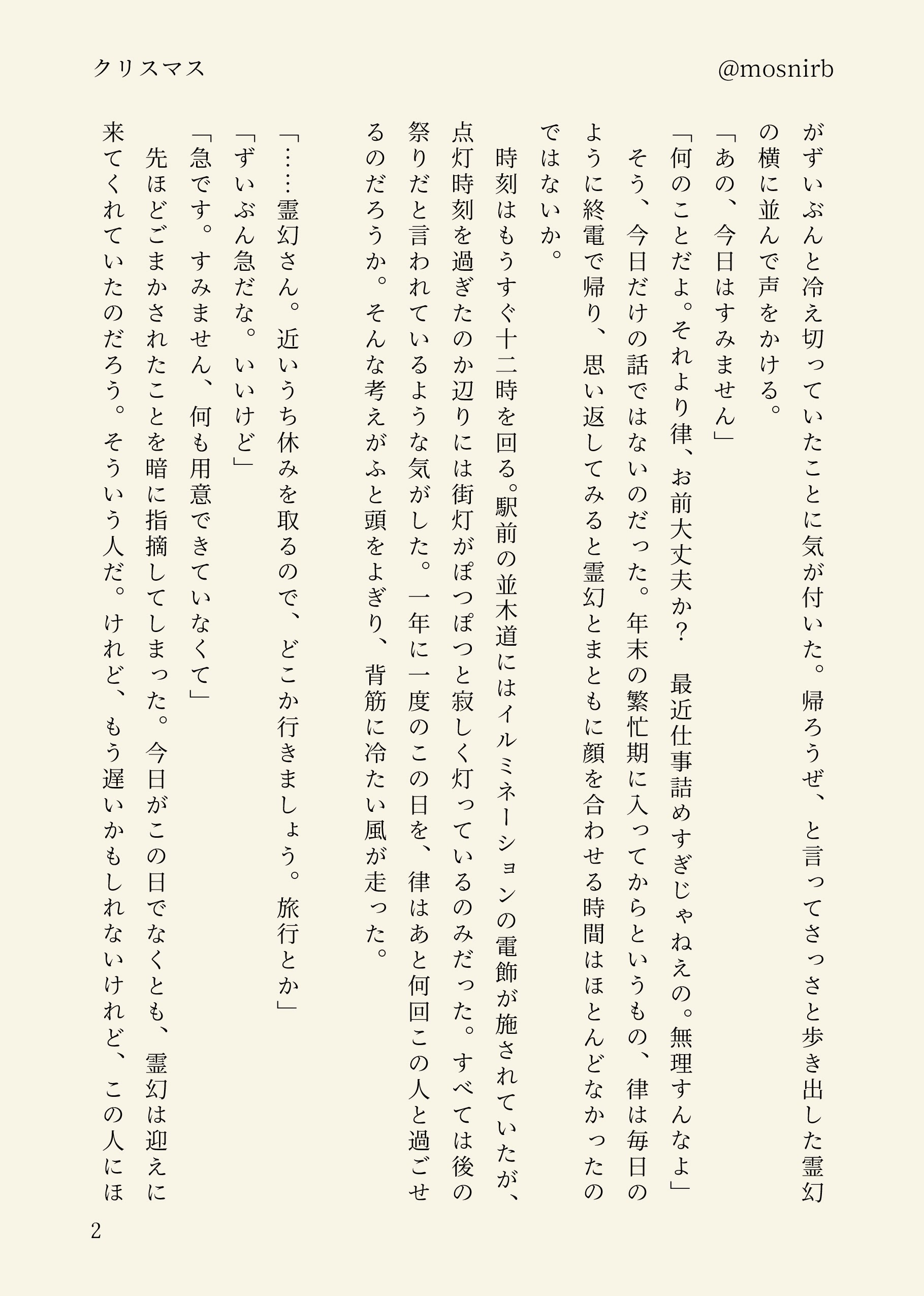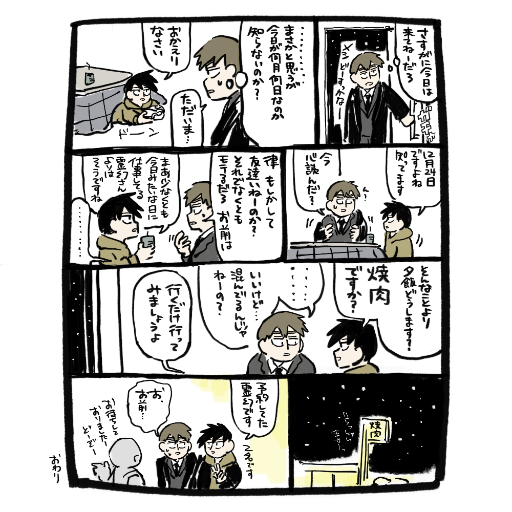 律霊ワンドロ12月 クリスマスデート書けなかった…………(2021年やり残したこと)冬の訪れは捏造がすごいけどお気に入りです。