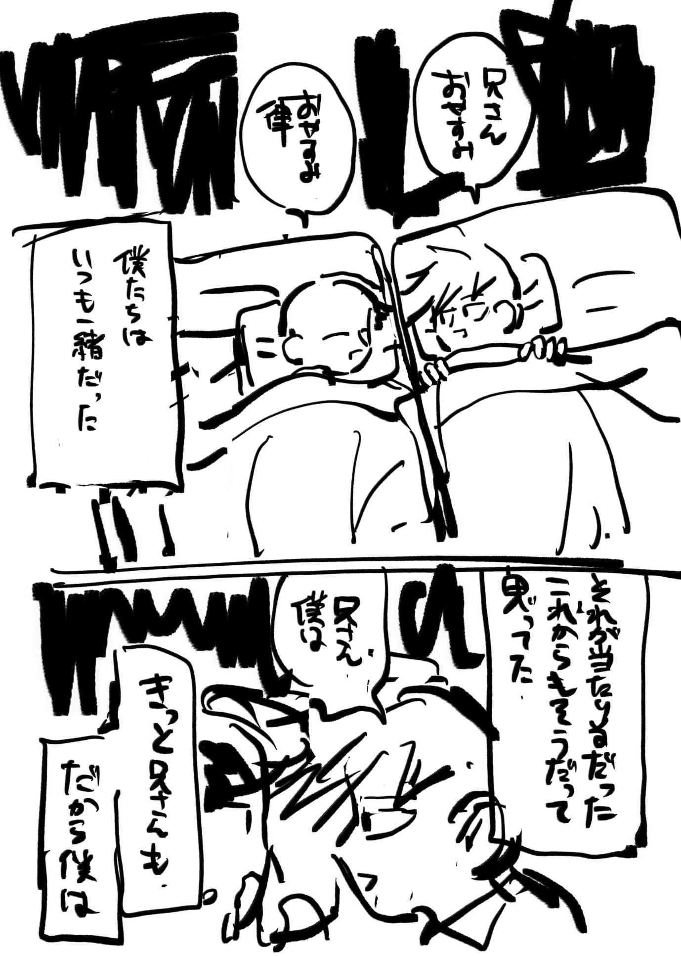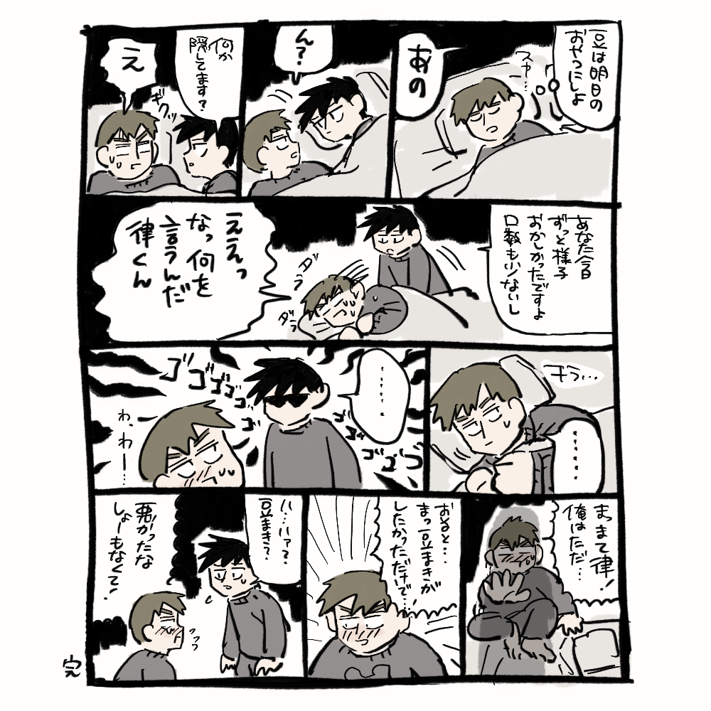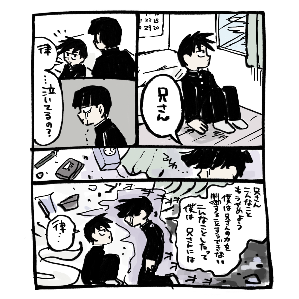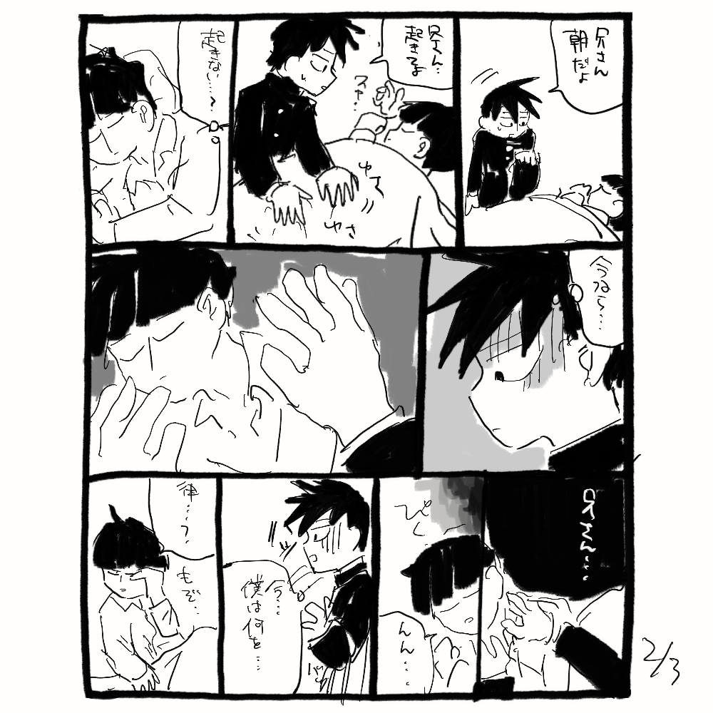 影山兄弟が何にも言えないまんが 首絞め未遂表現があります!!!!!! 兄さんの寝姿が可愛く描けたので僕は満足です。ドアが2回ほど反転しますが気にしないでください