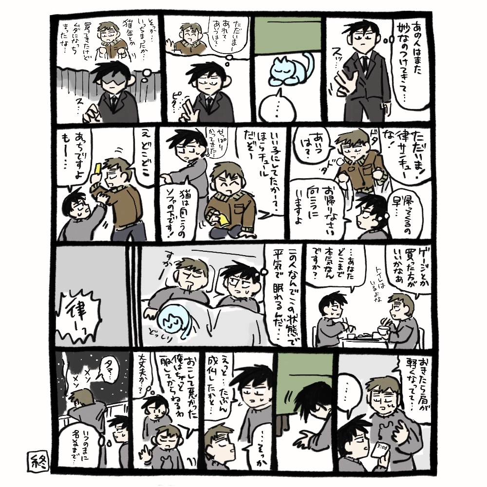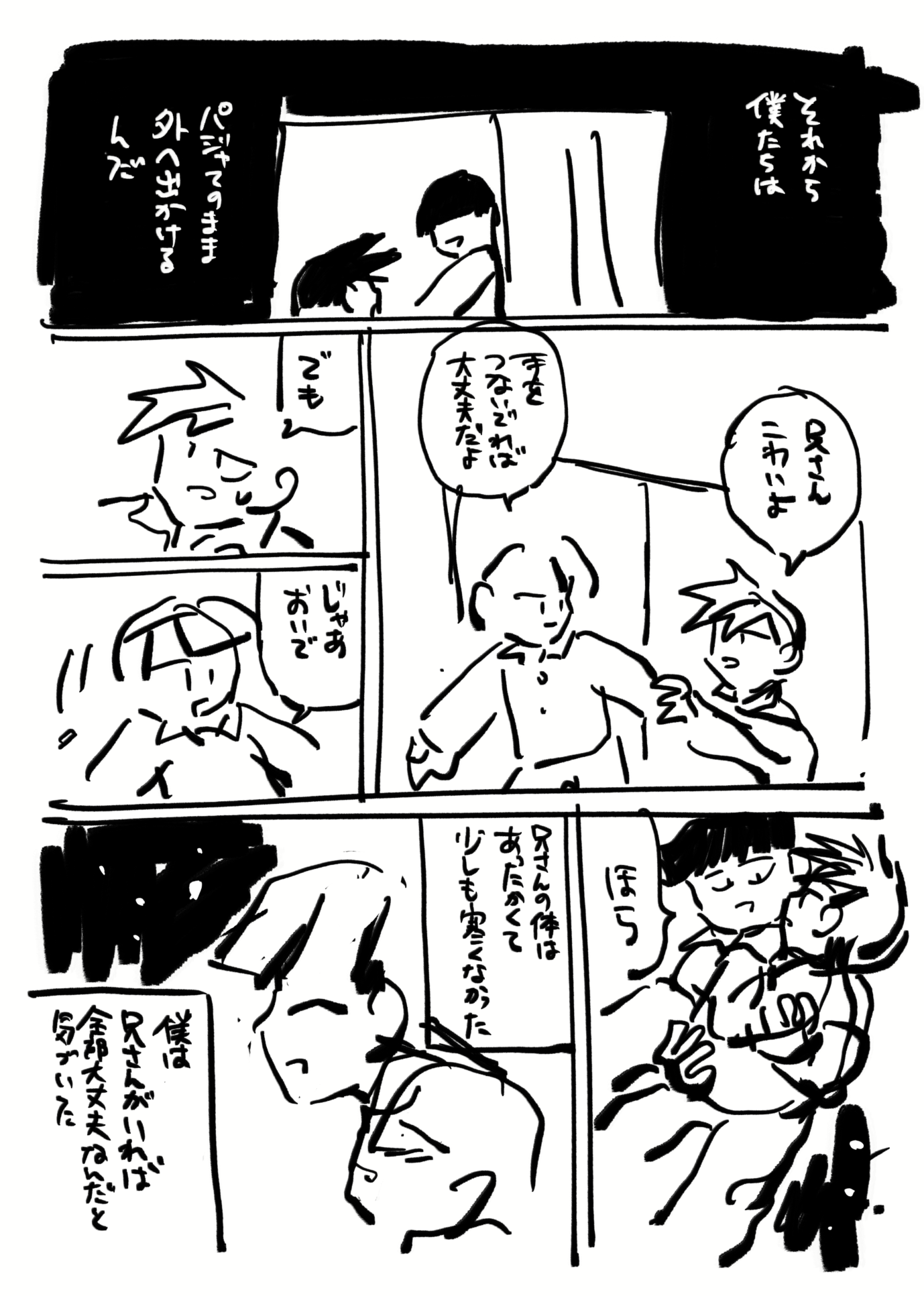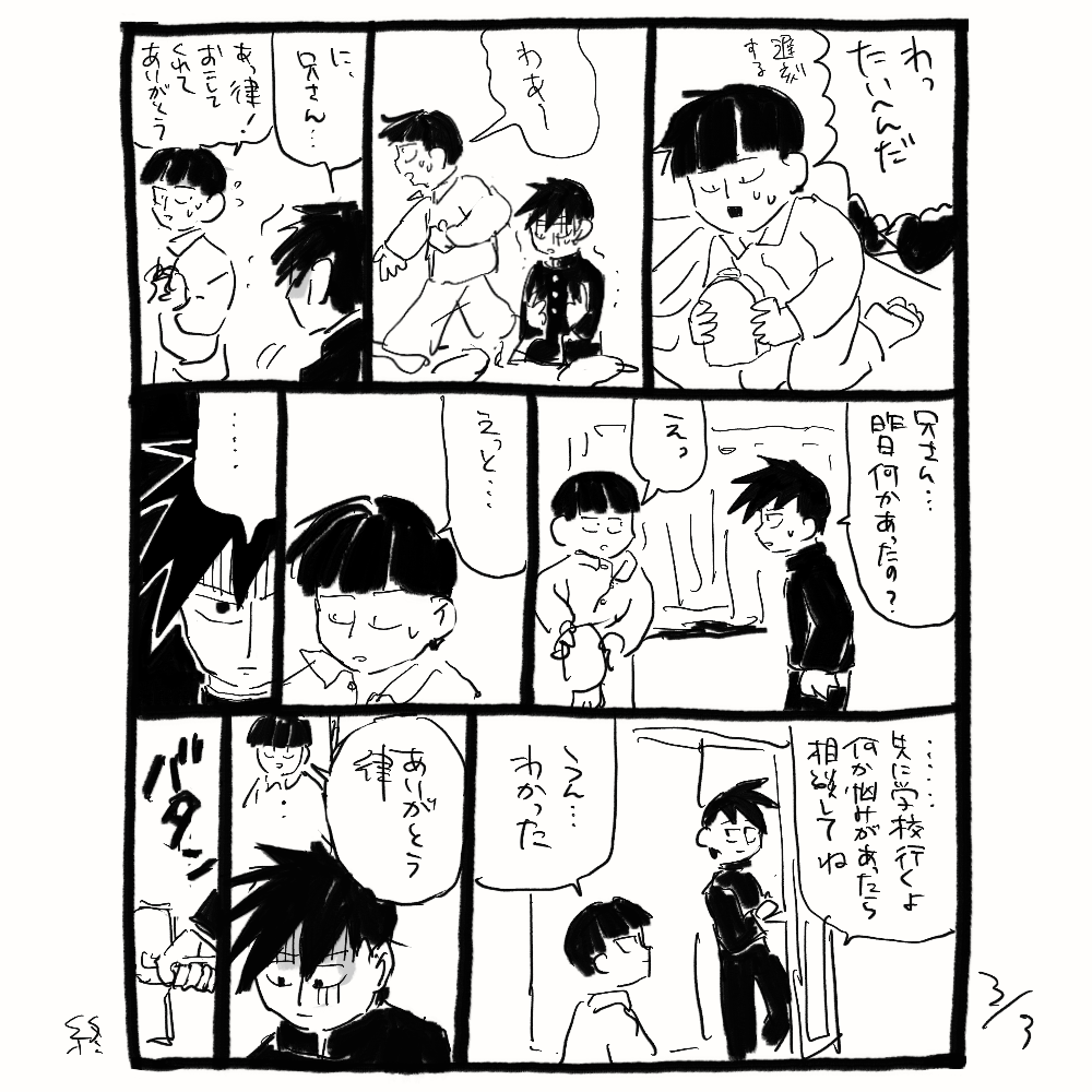 影山兄弟が何にも言えないまんが 首絞め未遂表現があります!!!!!! 兄さんの寝姿が可愛く描けたので僕は満足です。ドアが2回ほど反転しますが気にしないでください