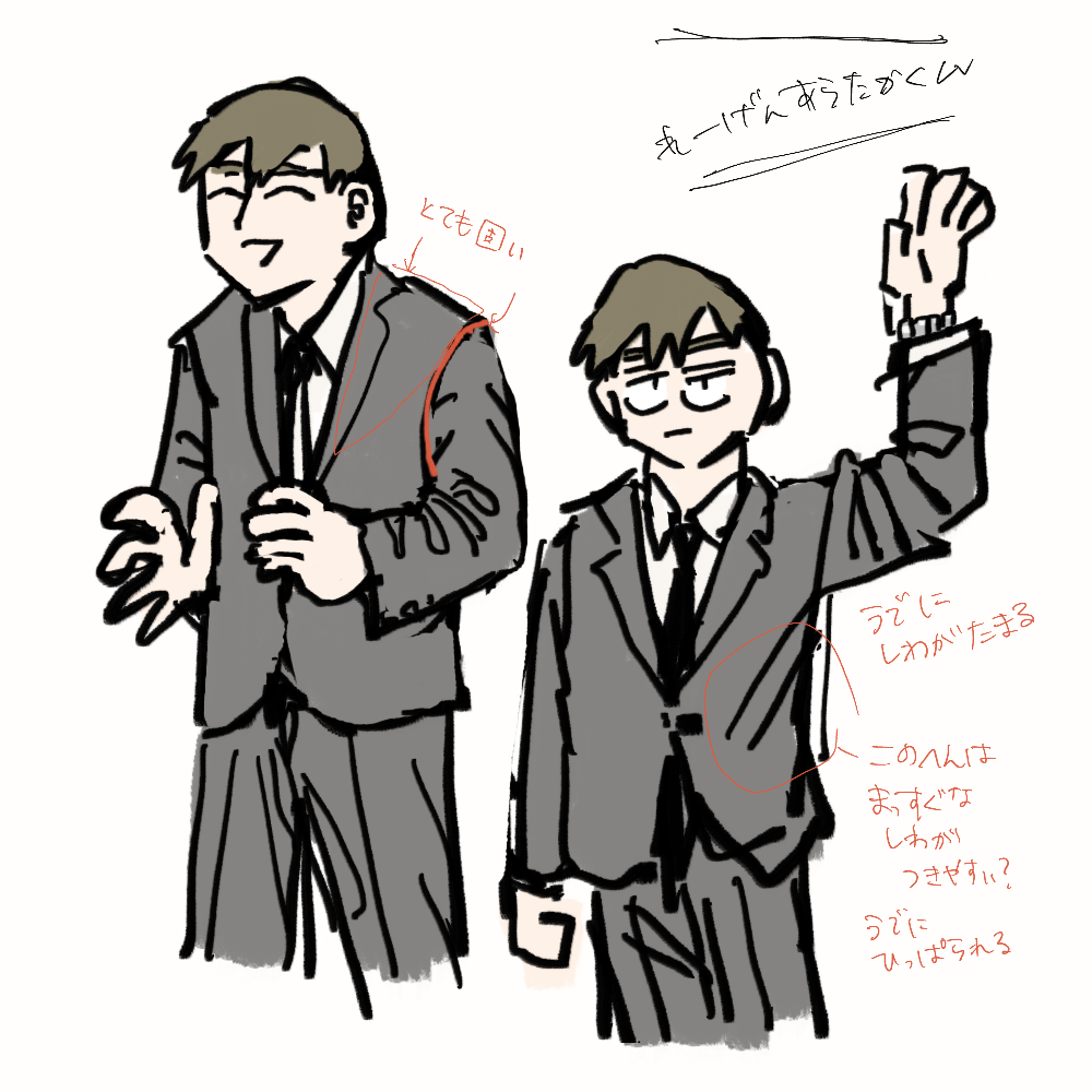 国会中継を見て分かったこと 上着の前部分のことは分かってきた あと後ろ姿と足元が分からん